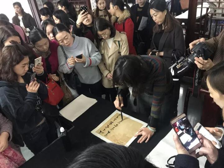 培訓班學員在中國農業(yè)大學附屬小學進行訪學時,農大附小書法老師贈與重慶班老師一幅墨寶,全體參訓教師還觀摩了特色繪本閱讀展示課。
