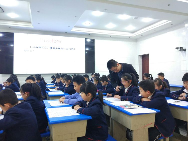 今天的現(xiàn)場教學,周奇老師為我們帶來的是說明文與散文的對比。給小學五年級同學上語文文體教學課,本能反應也覺得會是非常無聊枯燥的課吧。但是,在周奇老師的手中,卻變成了異?;钴S積極的課堂,同學們參與性極高,一直在積極思考、積極回答問題,以至于在課堂結束時,周奇老師對學生們說“孩子們,那我們這節(jié)課到此結束?!睂W生們還依依不舍的不愿離開,甚至還有孩子發(fā)出“啊~這么快呀?!蔽蚁?,一節(jié)成功教學課堂就是上課到學生不想下課的境界吧,周奇老師做到了。