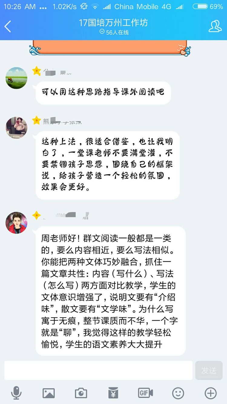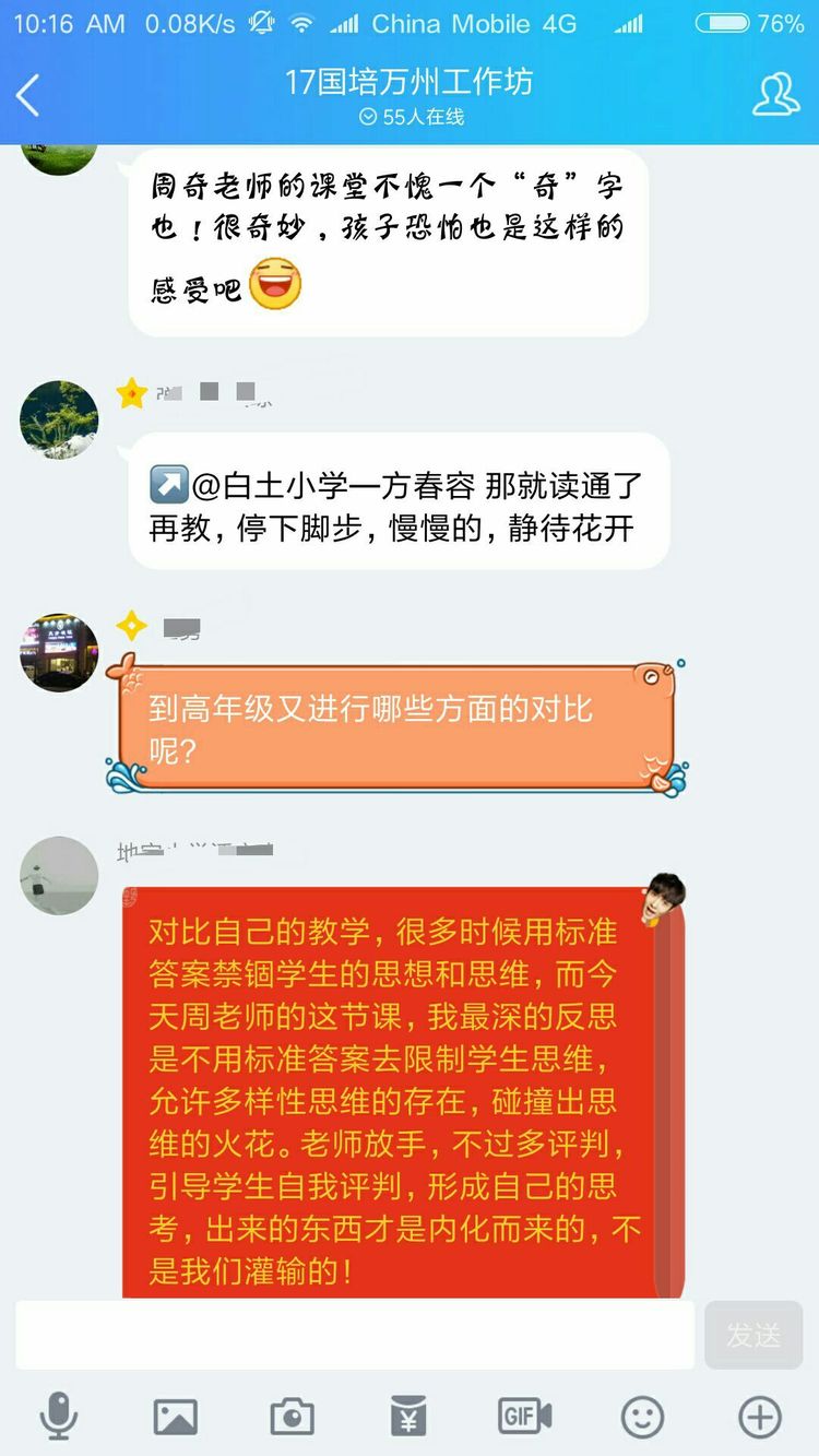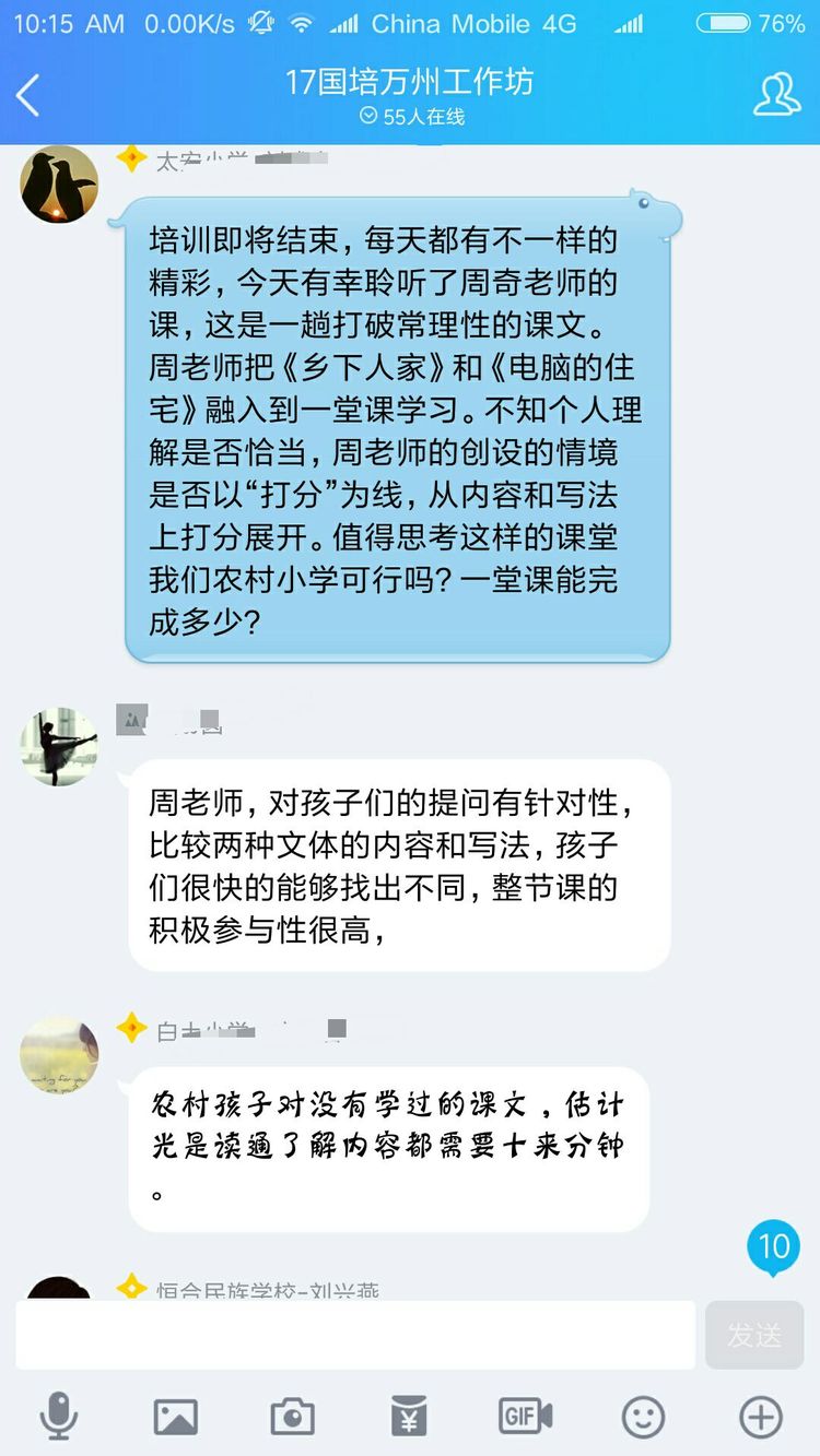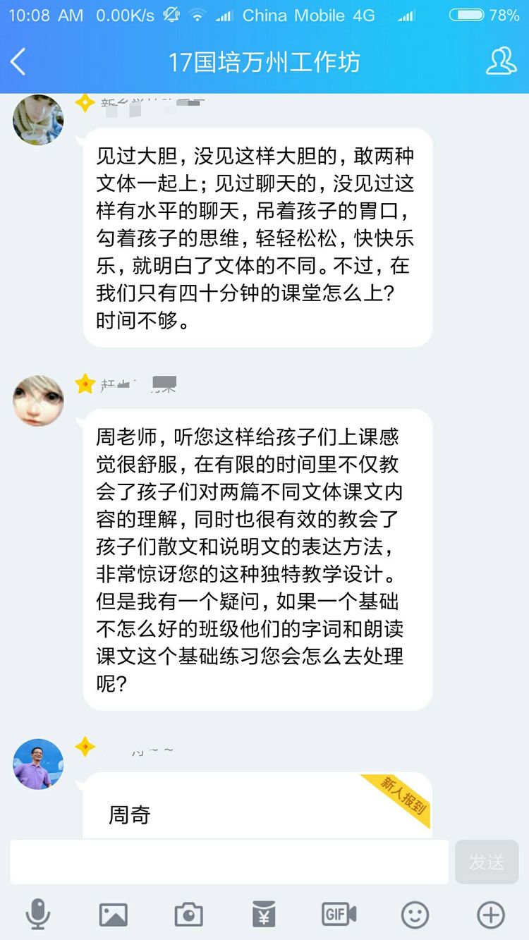 當然不是啦,認真參加培訓的老師們怎么舍得玩手機呢。其實是周奇老師讓大家對現(xiàn)場教學進行點評,讓每一位老師將點評文字發(fā)在QQ群里,然后對參訓老師一一解答疑問。以下分享老師們的點評