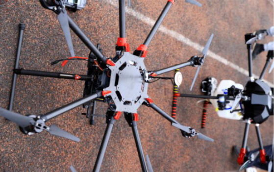 (無人機(jī)調(diào)試好后,等待著起飛)