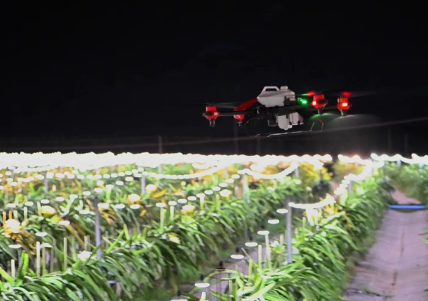 極飛農(nóng)業(yè)無人機(jī)夜間給火龍果噴藥